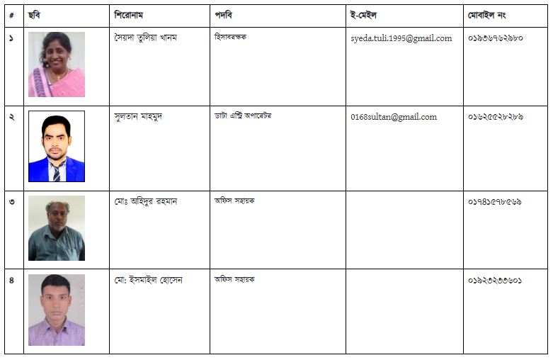 ![]() | Md. Jamal Hossain | Accountant | Upazala Secendary Education Office, Savar, Dhaka. | 02-7743588 | 01711260670 |